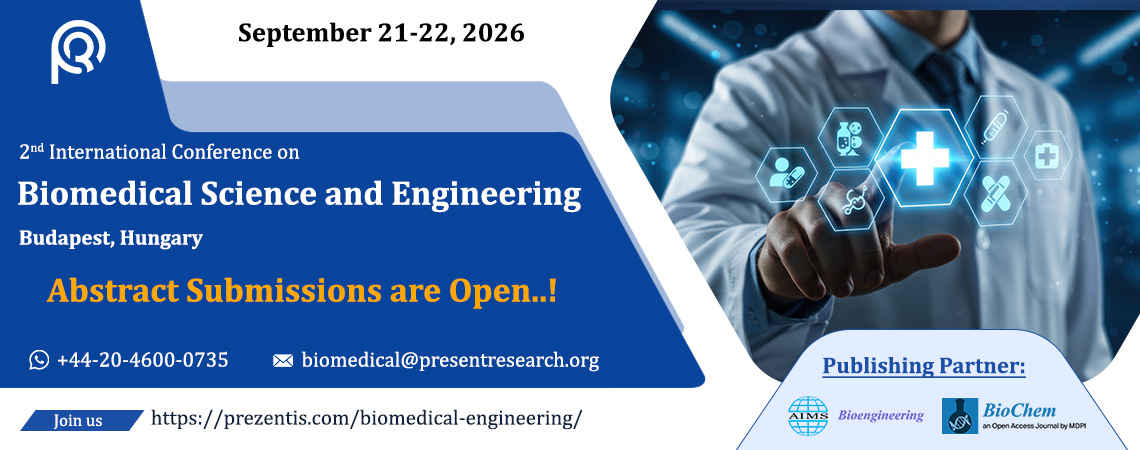 Prezentis Meetings proudly announces the 2nd International Conference on Biomedical Science and Engineering scheduled to take place on September 21-22, 2026 at Budapest, Hungary. Under the theme “Driving Sustainable Growth Through Biomedical and Technologies”, this premier global event will bring together leading researchers, scientists, academicians, clinicians, and industry professionals to discuss groundbreaking developments in biomaterials, tissue engineering, medical imaging, biomechanics, genetic engineering, and related fields.